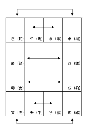 在「太陰的思慮本義」中,我們提到 太陰與武曲的六合關係 ;六合是指四方(東南西北)及上下,所形容的是地貌狀況,關係為一陽一陰互相調節,故此十二地支中便有六對合宮,分別是「子丑合、寅亥合、卯戌合、辰酉合、巳申合、午未合」,引申到生肖的「鼠牛合、虎豬合」等等。將這關係套用在斗數上,會發現十四主星中有五對星曜,當一顆在十二地支任何一個位置,另一顆必定在其六合宮位;它們是「天機、破軍」、「太陽、天府」、「武曲、太陰」、「天同、貪狼」及「廉貞、天梁」,例如太陰在卯,武曲必定在戌;太陰在亥,武曲便在寅,這意味著六合的星曜也隨著宮位而互相受到對方的影響。
