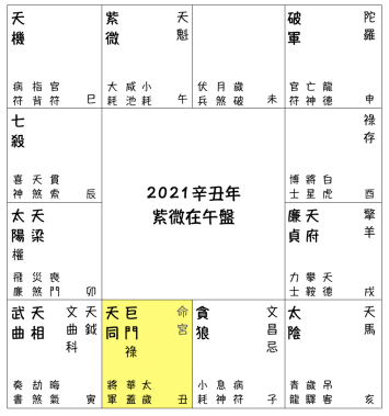 總括而言,辛丑年對於紫微在午盤的人並非一個開創、打拼的年份,比較適合低調行事,作風穩健,因為之後的2022壬寅年還要走武曲化忌行動斷續的一年,一切還是謹慎為重。
