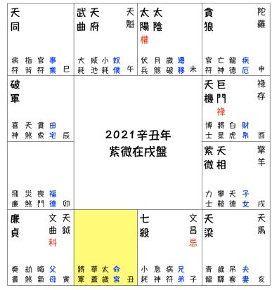 我們之前已經分別解構「紫微在寅 – 紫微在酉盤」,今天繼續探討「 2021辛丑流年預測 – 紫微在戌盤 」。小妹是以十二基本盤,加上明年辛干四化與流曜,包括:擎羊、祿存、陀羅、文昌、文曲、天魁、天鉞和天馬,還有流年的博士、太歲、將前十二神作一個基本預測,如未確定自己的基本盤,可先以下列程式起盤,看看命盤上紫微星在哪一個宮位。