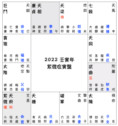 辛丑年還有個多月便過去,我們是時候來談談2022壬寅流年運程了。像往年一樣,小妹會在接下來十二篇將壬年四化、流年副曜、將前、歲前及博士十二神投放到十二基本盤上作全盤分析,看看不同基本盤會顯現什麼形態。如未清楚自己使用的基本盤,可先以下列起盤程式,看看命盤上紫微星在哪一個宮位。